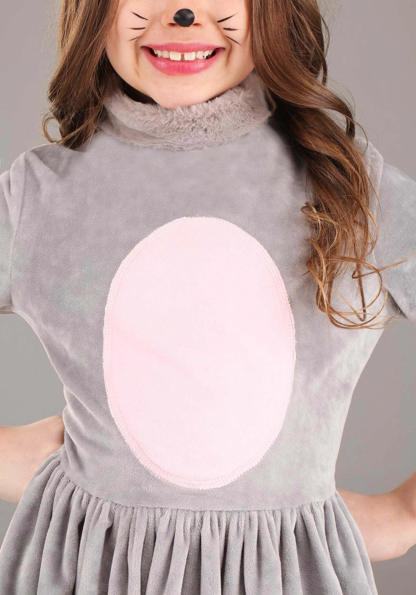 Cute, smart, and sweet – these words describe mice, but we bet that you can also think of another special someone who also fits the bill! This exclusive Mouse Dress Costume for Girls perfectly fits your little one’s spunky nature. She’ll squeak with excitement when she sees the soft velour dress with its knee-length skirt and furry collar. The swingy tail attached to the back is a sprightly touch. For extra “Aww!” factor, add the headband with its two fuzzy ears and perky pink-and-gray-dotted bow.Â