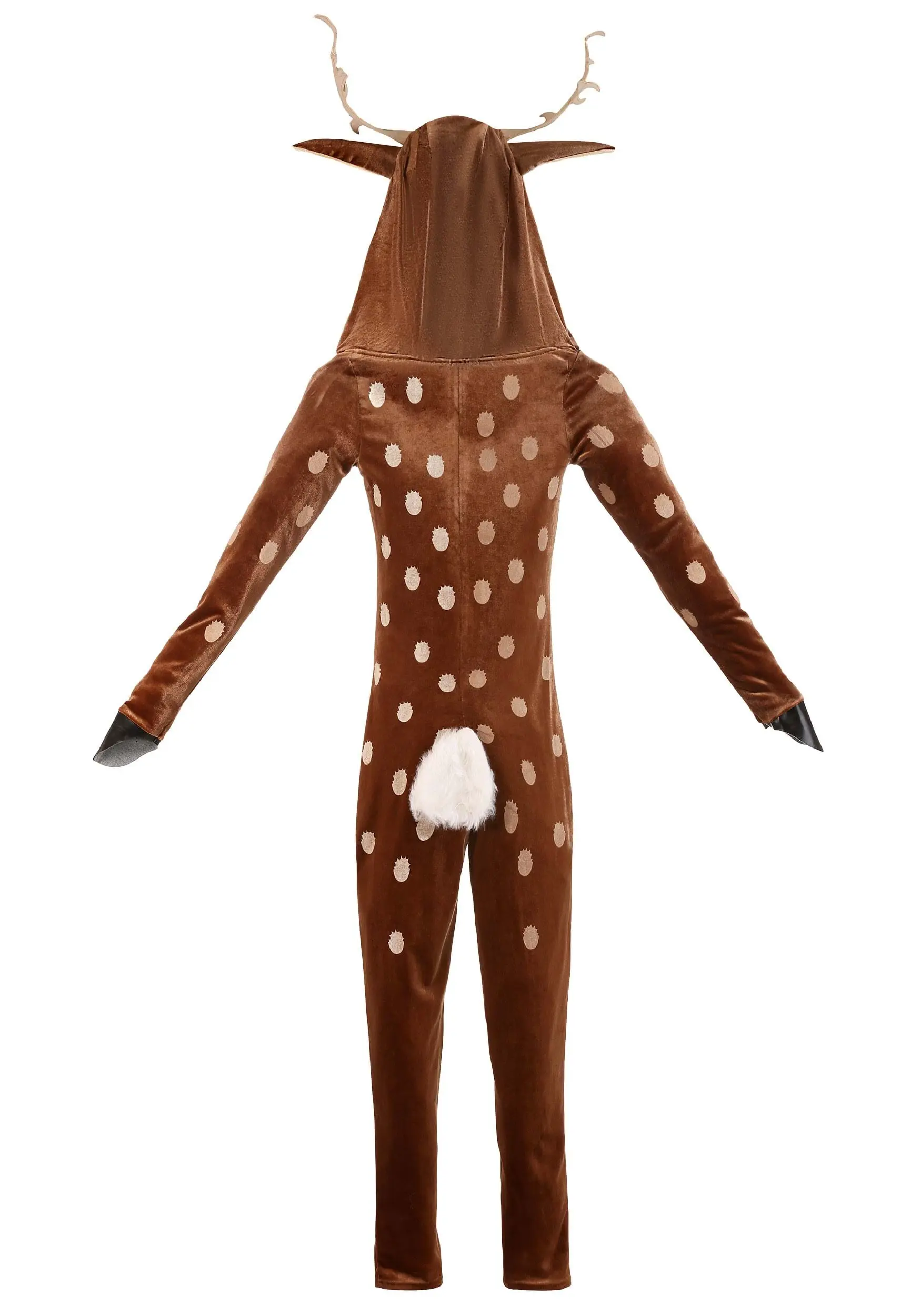You’ll look charming as a deer, but you’ll also have the advantage of wearing the spots of a fawn for an even more convincing stab at innocence. This exclusive women’s deer jumpsuit is made with stretch velour perfect for helping you feel out your new role as a playful fawn. With felt-covered, wired antlers and soft-sculpted ears on the hood, you’ll look ready for a danger-free frolic through the meadow. No one will ever suspect you’re actually a werewolf in this convincing disguise. Just make sure you get these deer clothes on before your next full moon transformation!