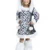 This exclusive Snow Leopard Costume for Toddlers is the cat’s meow! The jumpsuit zips up the back and is made of fluffy polyester faux fur that is printed with a pattern of black spots against a white background. A faux drawstring embellishes the waist, and the collar, wrists, and ankles are all sewn with white faux fur. A same-fabric tail graces the back of the jumpsuit and complements the matching headband with its fabric ears.Â