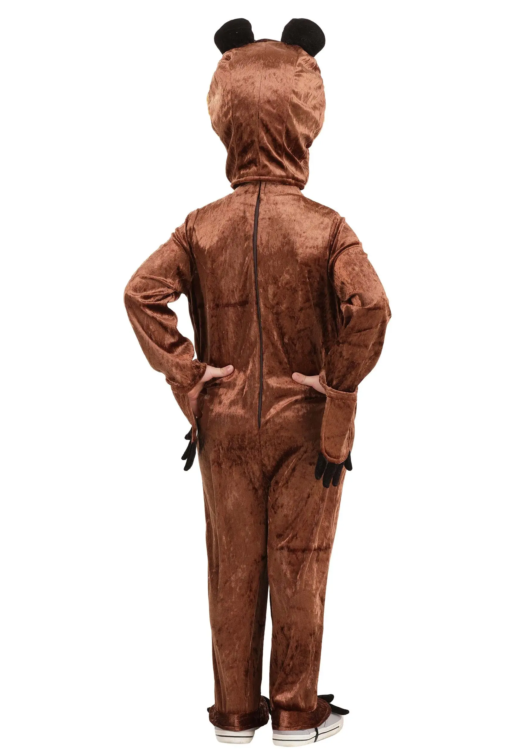 Become Masha’s kindly companion when you wear your officially licensed, exclusive Toddler Bear Costume from Masha and the Bear! The jumpsuit zips up the back and is made of soft brown velour. The tan inset sewn over the torso is gently stuffed to give it a roly-poly appearance. Each attached hand cover is tipped with fabric “claws” and secures across your palms with an elastic band. The attached shoe covers secure the same way. The hood is decorated with soft-sculpted bear features and fabric ears.Â
